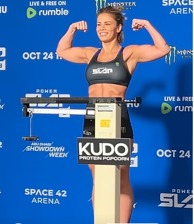 前日計量、割れた腹筋でマッスルポーズ!@powerslapより