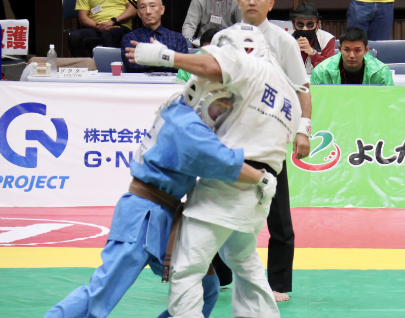 組みつきタックルへ