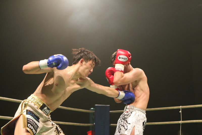 パンチを放つユン・ドクジェ(写真左)vs国崇(写真右)