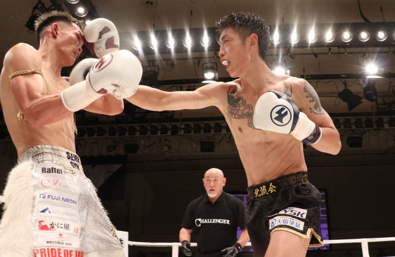 計量超過の真琴(左)に攻撃する森岡(右)