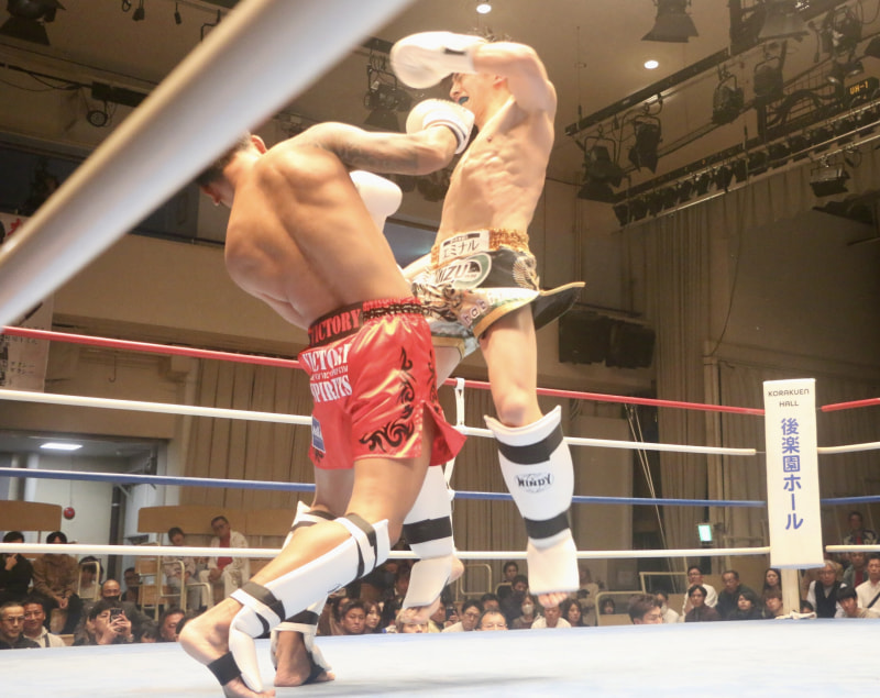 飛びバックブロー!
