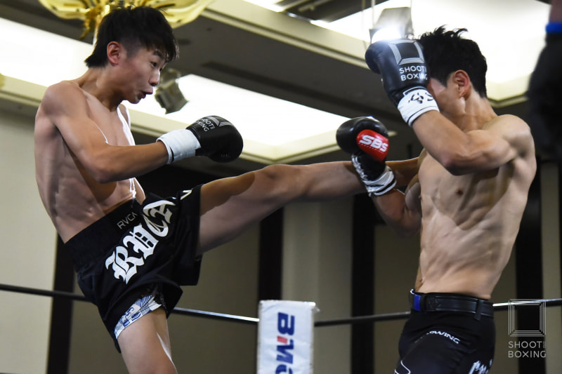 山下信雄(右)に判定勝ちした水谷昊大(左)