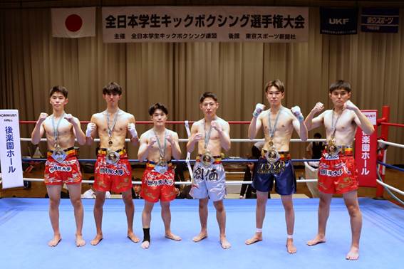左から小林、喜多、貴田、丸山、関亦、木曽の各階級王者