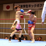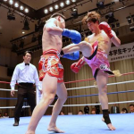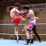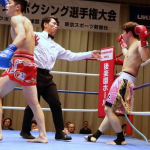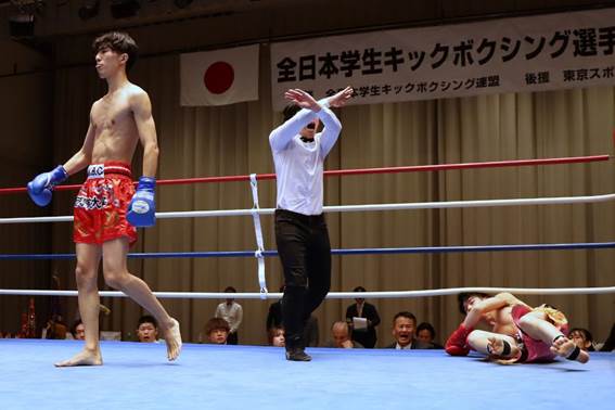 ダウンした宮谷は起き上がれず、レフェリーは試合を止めた