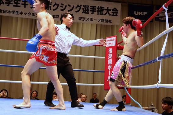 小林がパンチのラッシュでスタンディングダウンを奪う