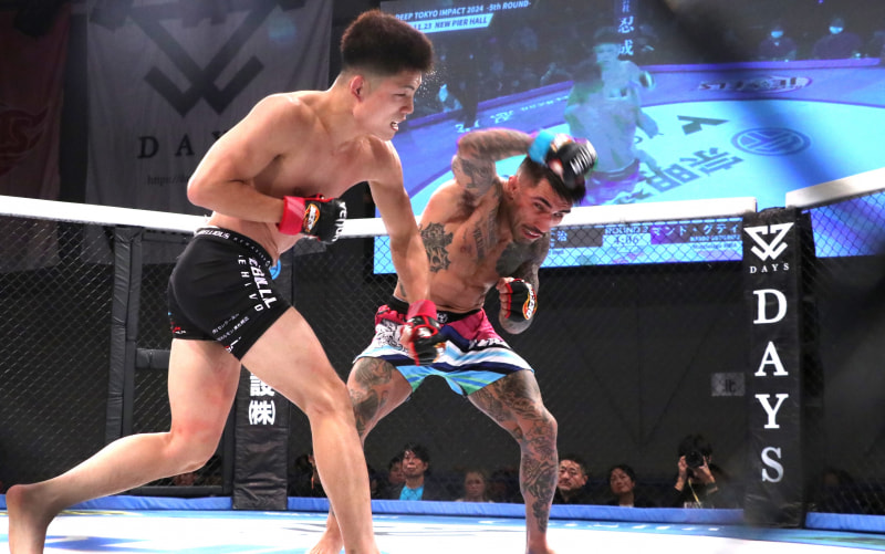 グディエレス(右)はパンチを打ちながら突進して後藤を苦しめた