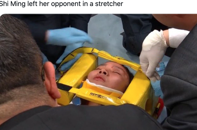 衝撃のハイキック失神KO劇、敗れた女子選手は首を固定され、病院直行に@mmamania