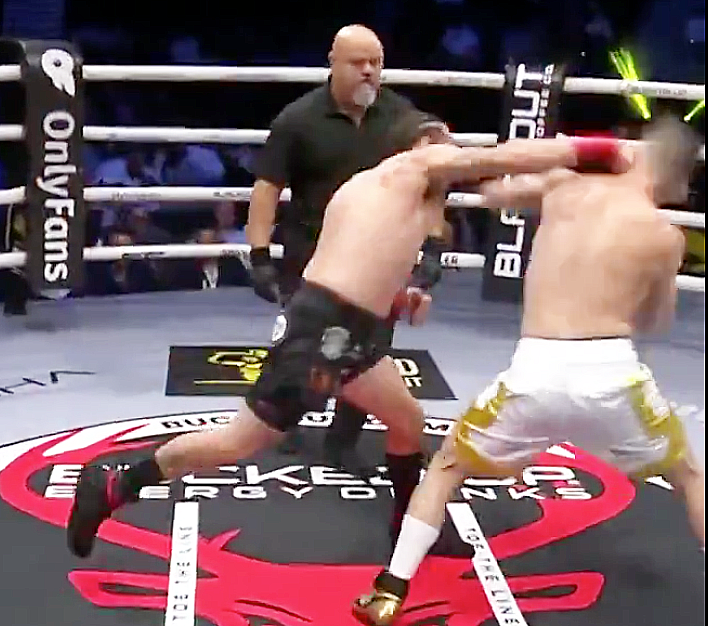 ゴングと当時にワトソンの強烈な右ストレート!@bareknucklefc