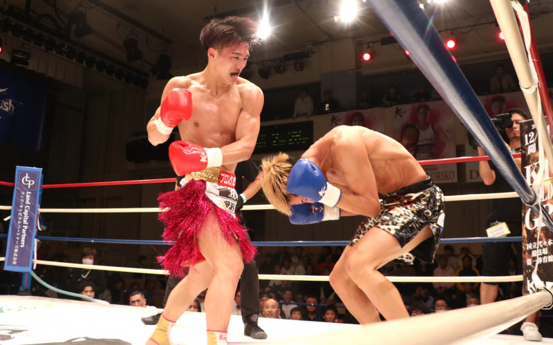 最後はパンチ連打で横山がKO勝ちを奪い王座防衛に成功