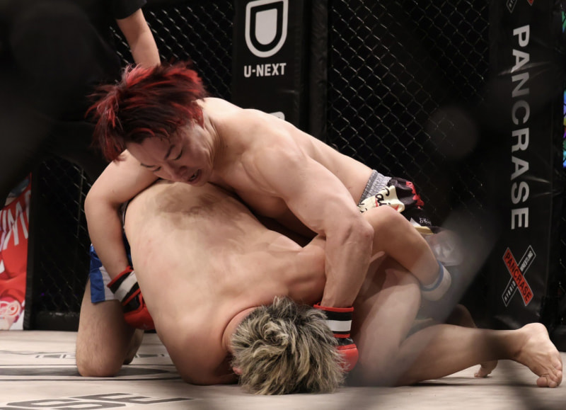 平がパウンドを打ち込む