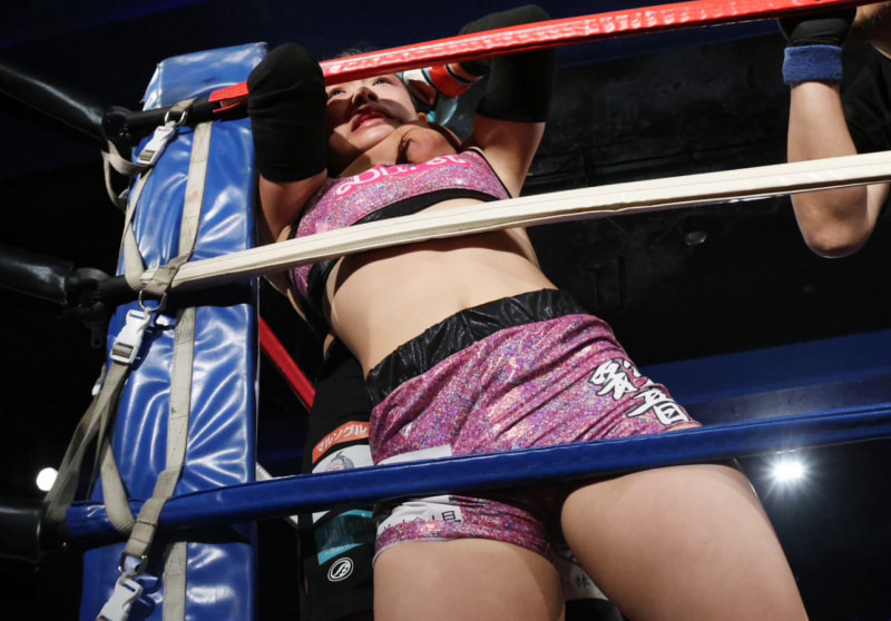 NOELが立ったまま背後からスリーパー、苦しむ平田