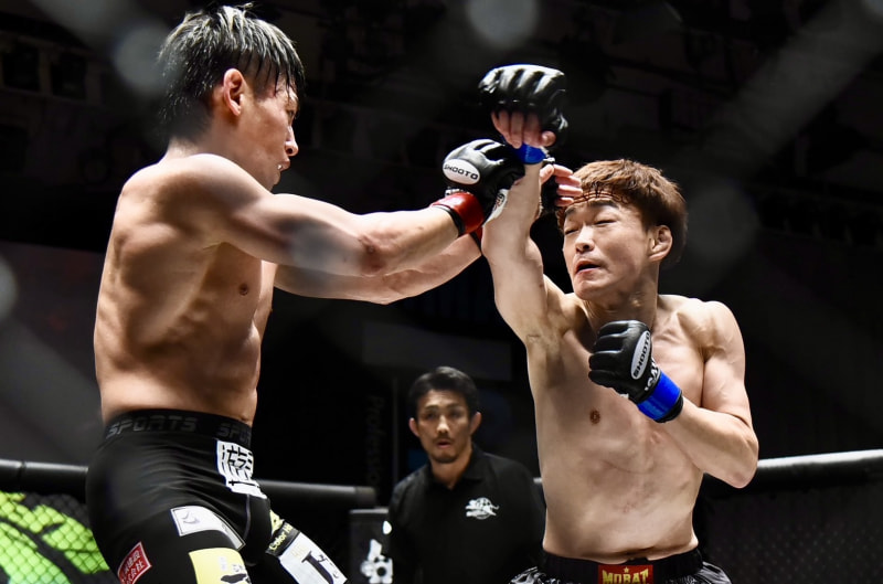 泰斗(左)から判定勝ちした内藤頌貴(右)