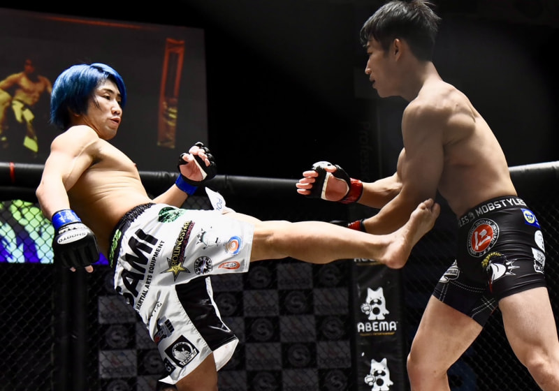 引き分けに終わった人見礼王(右)と清水俊一(左)