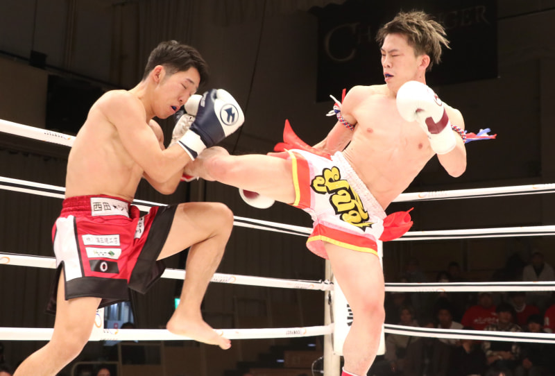 優心はミドルキックからヒザ蹴りで優位に立った