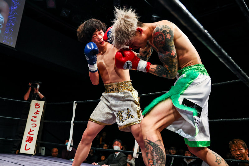 1R中盤まではシーソーゲームを繰り広げていた矢吹空也と平野功大だったが、ラウン ド終了間際矢吹は右ミドルをクリーンヒットさせたことをきっかけに平野を攻略。パンチの連打で先制のダウンを奪う。