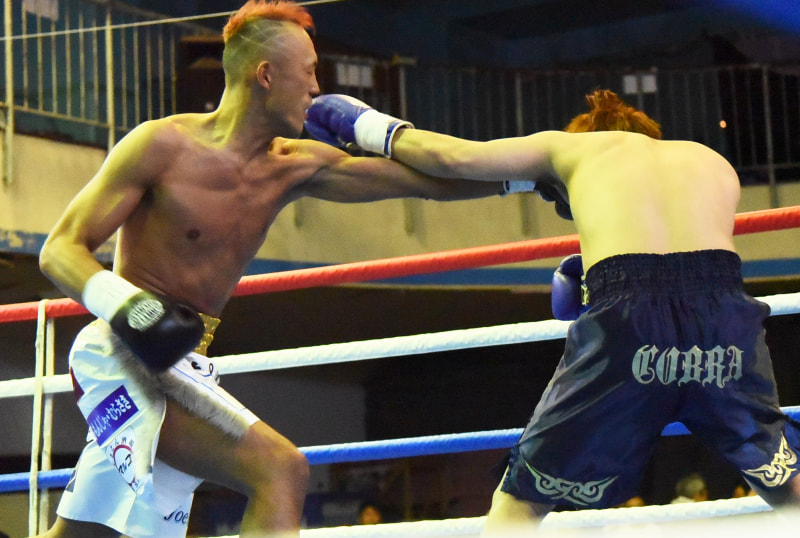獅・センチャイジムのリングネームでNJKFの活躍で活躍したヤナチャイが8年ぶりに復帰、B-UPウェルター級王者の畑中とヒジありのボクシングマッチで対戦した。