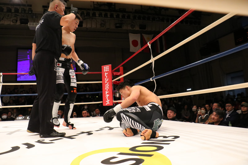 川上にダウンを奪われる山田