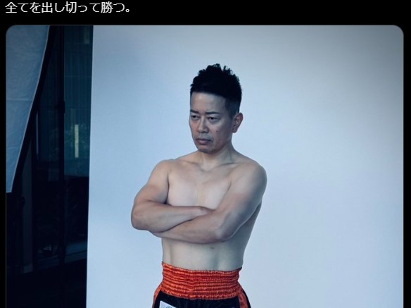 宮迫の割れた腹筋!試合当日のXに投稿していた(@motohageより)