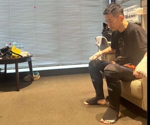 試合前の控室で精神統一する宮迫(@yusuke0001sugaより)