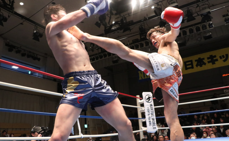 CAZ(右)はこの左ハイキックでダウンを奪い王座防衛に成功