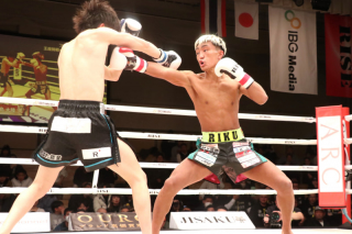 1R、ともにサウスポー構え。松本は左から右のパンチで猛攻を仕掛ける。何発か被弾した数島は棒立ちになる瞬間もあったが、立て直し左のパンチ、飛びヒザ蹴りで反撃。松本の左のパンチがいいが、数島の蹴りからのパンチへつなげるコンビネーションも光った。互角の展開も数島の左が入り、松本がダウン。立ち上がった松本に、数島はパンチ連打して二度目のダウンを奪う。立ち上がった松本にパンチをまとめると、内容の濃いラウンドが終了。