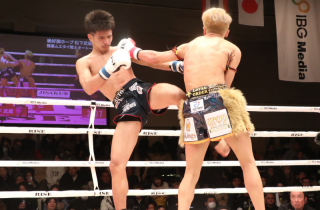 1R、松下はカーフキック、左右のパンチで爆発的な攻撃を繰り返す。オートーはガードを高めながらミドルキックを的確に返す。終了間際に松下は右を当てて追い込んだ。