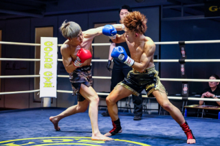 1R、お互いにローを蹴り合う中、三橋は強烈な左ローを集中打。三橋は飛び込みながらの左ストレート、前蹴り、バックブローと多彩な技を見せ、紺野は右ジャブ、左ストレート。三橋は左ロー、左ミドルと蹴り技を当てて入らせず、紺野は強引にワンツーを飛ばして譲らない。