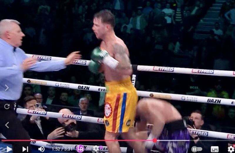 相手が崩れる(Matchroom Boxing YouTubeより)