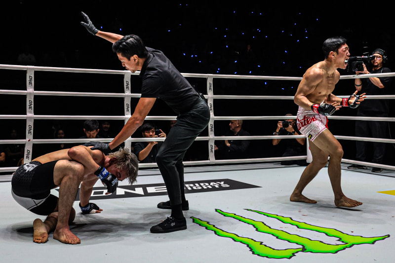 青柳、相手のボディストレートで悶絶ダウン©️ONE