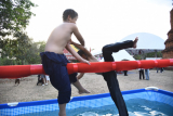 - 首相撲の練習(?)になる棒に乗っての落とし合いのスペースも。落とされると下には汚れた水が……