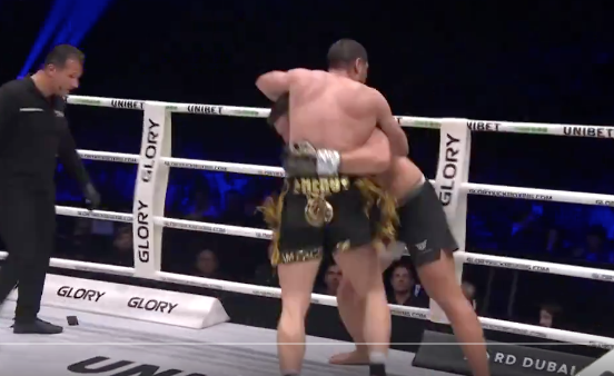 クリンチ状態の両者@GLORY_WSより
