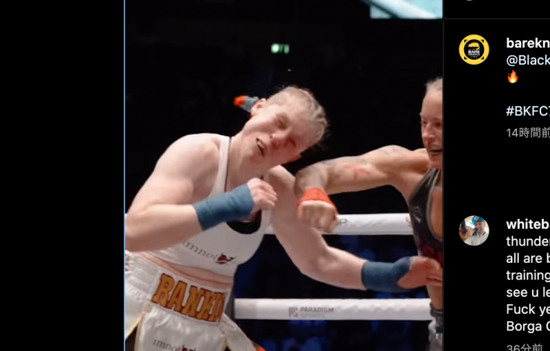 ランキンがパンチを被弾した瞬間!その衝撃の顔(@bareknucklefcより)