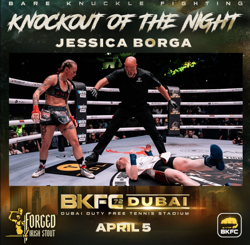 ボルガが秒殺KOで初代王者に!この試合はノックアウト・オブ・ザ・ナイトに選ばれた(@Bare Knuckle FCより)