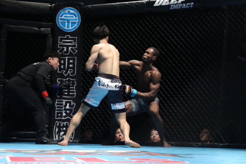 山﨑の攻撃で崩れTKO勝利に