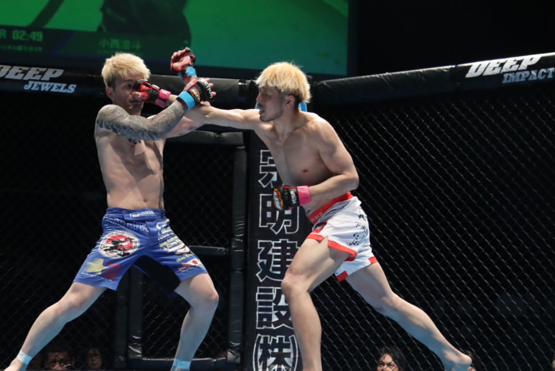 田中のパンチが直撃!判定勝利