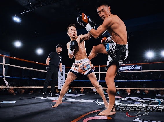 水野が左フックを打ち抜く