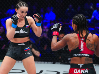 4月12日(日本時間)に米フロリダ州オーランドで開催された総合格闘技イベント『PFL 2025 World Tournament: 1st Round 2』の女子フライ級トーナメント1回戦にて、ダイアナ・アヴサラゴワ(26=ロシア)がエローラ・デイナ(26=ブラジル)に1R一本負け。相手の強力なネッククランクに苦悶タップ、初戦敗退となった。