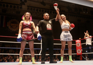 しかし3R、大翔が鼻血を出しながらも、左フック、左ヒジがヒットすると、福田の顔が跳ね上がる。福田は笑いながら猛攻、負けじとパンチヒジを繰り出し合う打ち合いで終了した。
