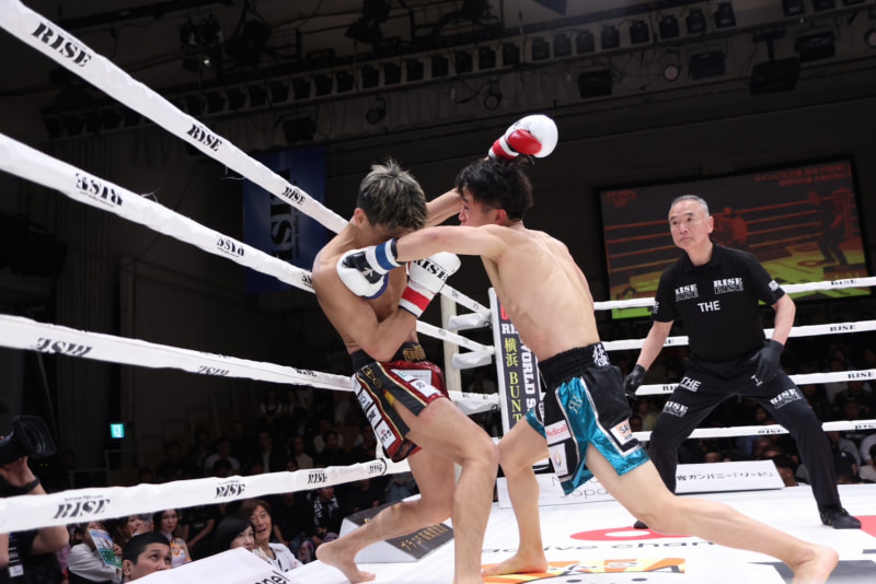 強烈なパンチを見舞う翼(右)