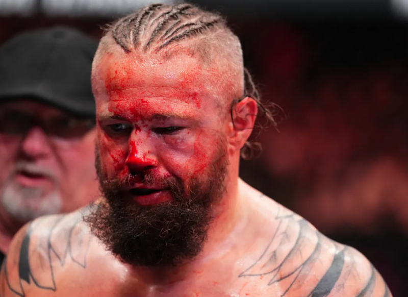 顔面流血、鼻が少し曲がっているように見える@UFC