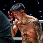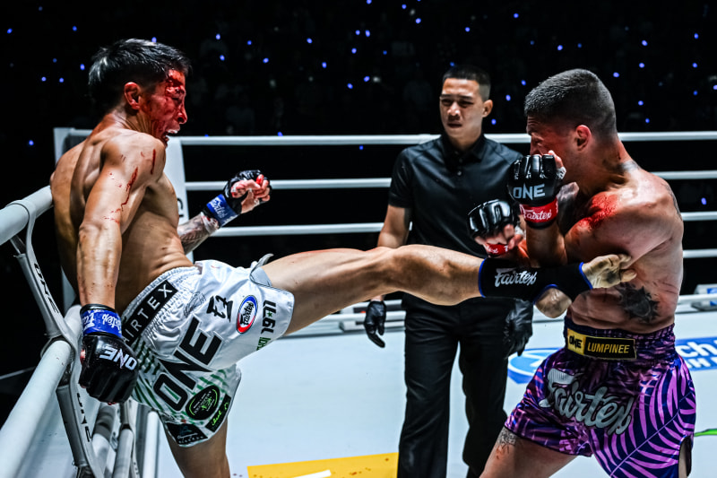 流血しながら蹴りを放つ佐藤©️ONE