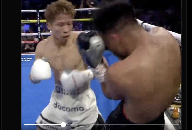 井上が2Rにダウン奪われるもボディを中心に反撃(@TOPRANK)