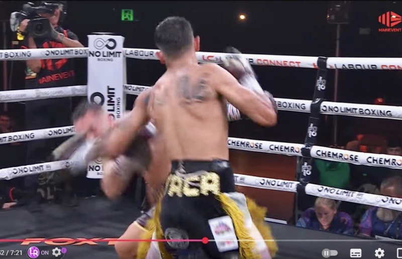 まずこの左で左目下をカットしたと思われる (FOX SPORTS AUSTRALIAのYouTubeより)