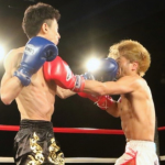 TATSUの右クロスがヒットし大橋(下)ダウン