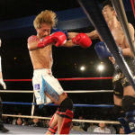 TATSU(右)の右ストレートが大橋(左)にヒット