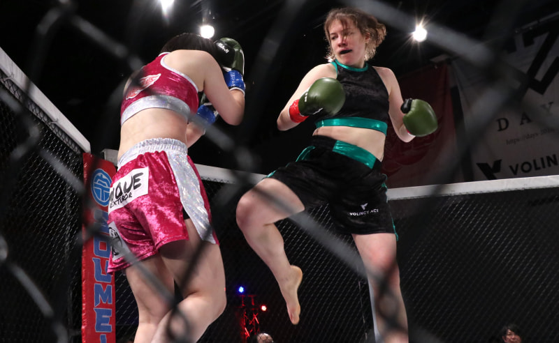 今大会唯一のキックルールは、エレナ(右)がちゃんりなからKO勝ち