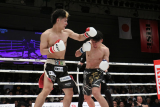 1R、序盤から蹴り合い、近距離ではパンチで真っ向勝負する両者。パンチと蹴りの連携が良い辻井がペースを掴む。