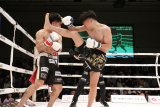 3R、高木がさらにギアアップ。気合の声を発しながら重たいパンチ、蹴りを連打。高木のカーフにモトヤスックがバランスを崩す場面が増える。下がり始めたモトヤスックに対し、高木が左ハイキックでダウンを奪う。立ち上がったモトヤスックだったが、高木の猛攻は止まらない。