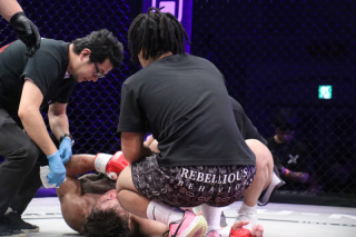 2R、平田が、長岡の前足に関節蹴りを入れながら、ジャブ、右ストレートをヒットさせる。まともに被弾する長岡、かなり効いている様子。平田の強打で長岡が崩れ落ちながら平田の左脚にしがみつくが、平田が構わずパウンド、鉄槌を連打! 殴られ続ける長岡を見て、レフェリーが試合を止めた。