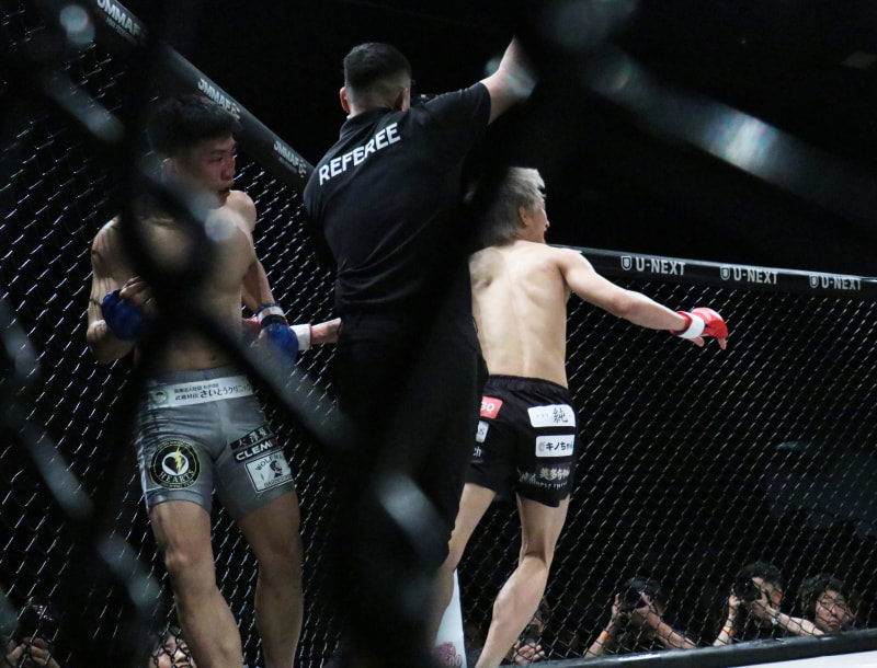 三宅(右)中田(左)にパンチラッシュでフィニッシュ!